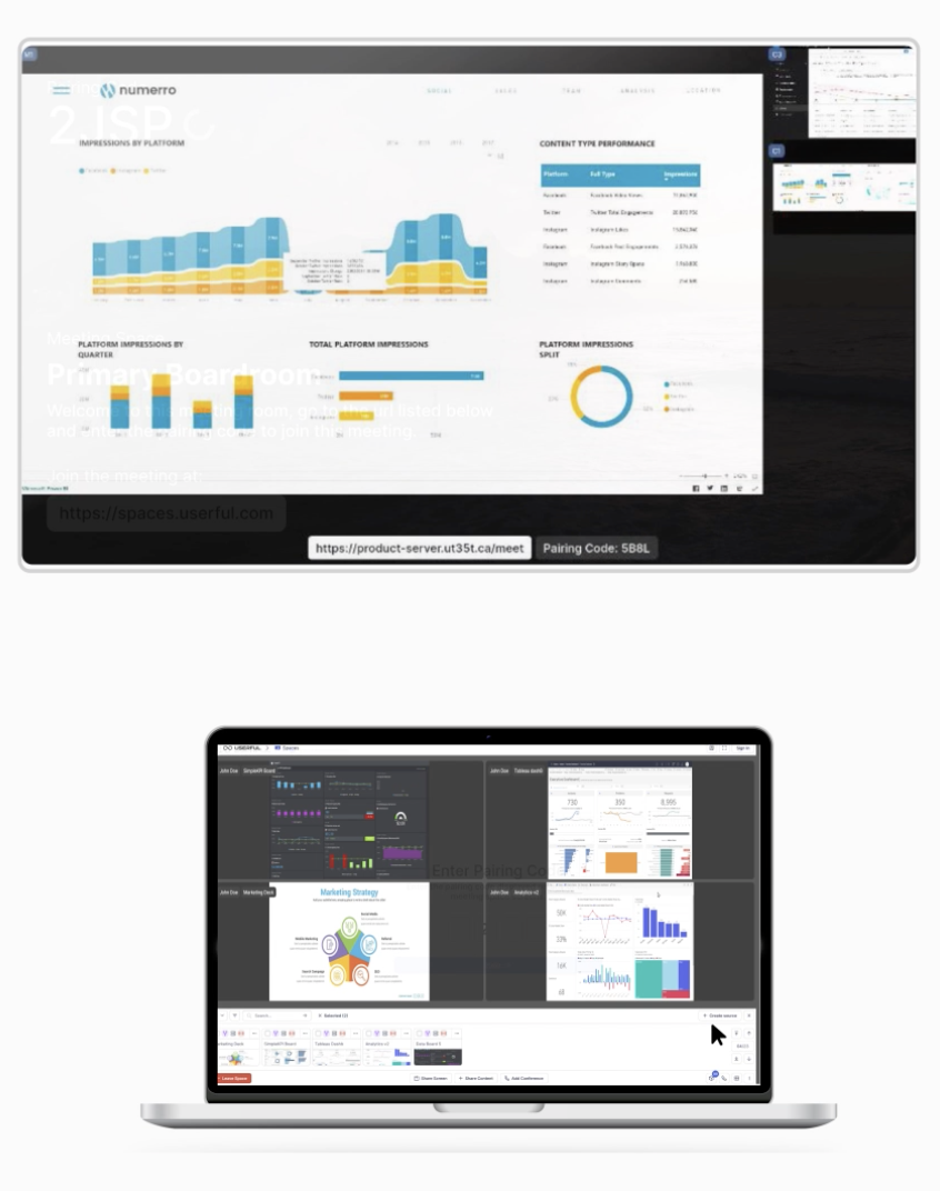 Up to six participants can share corporate resources from the Userful platform for effective collaboration.